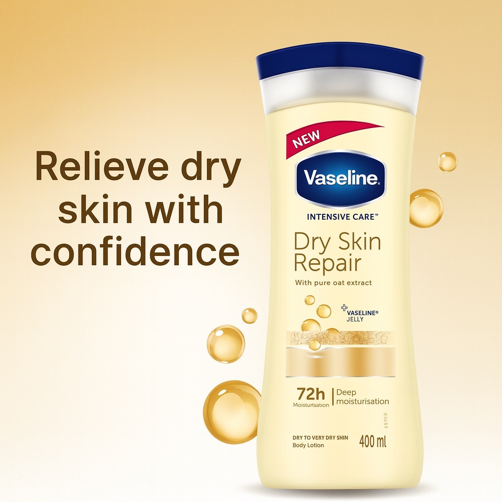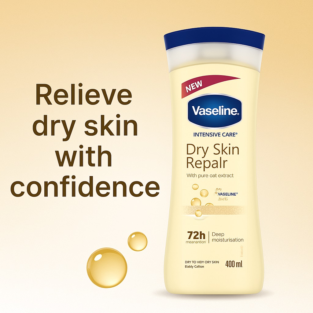 لوسیون بدن ترمیم کننده وازلین Vaseline Intensive Care Dry Skin Repair با فرمولاسیونی غنی از عصاره جو دوسر خالص و ژله وازلین طراحی شده تا پوست خشک و خیلی خشک را عمیقاً آبرسانی و ترمیم کند. این محصول ضمن جذب سریع، بدون ایجاد حس چربی روی پوست، سد دفاعی پوست را تقویت کرده و از پوسته‌پوسته شدن جلوگیری می‌کند.