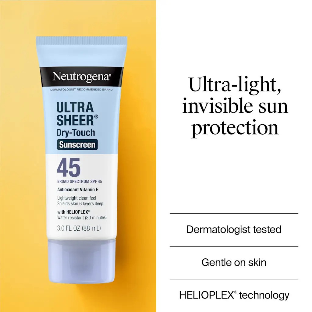 کرم ضد آفتاب SPF 45 نوتروژینا Ultra Sheer Dry-Touch یکی از پرفروشترین محصولات مراقبت از پوست است که توسط متخصصان پوست توصیه میشود. این کرم با فناوری Helioplex محافظت گستردهای در برابر اشعههای مضر خورشید ایجاد کرده و در عین حال بافتی بسیار سبک، غیرچرب و زودجذب دارد. مناسب برای استفاده روزانه در تمام فصول سال و قابل استفاده زیر آرایش.